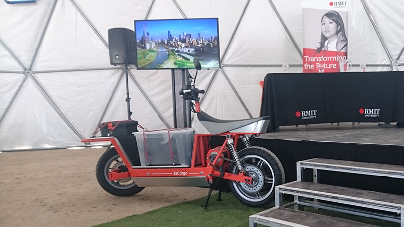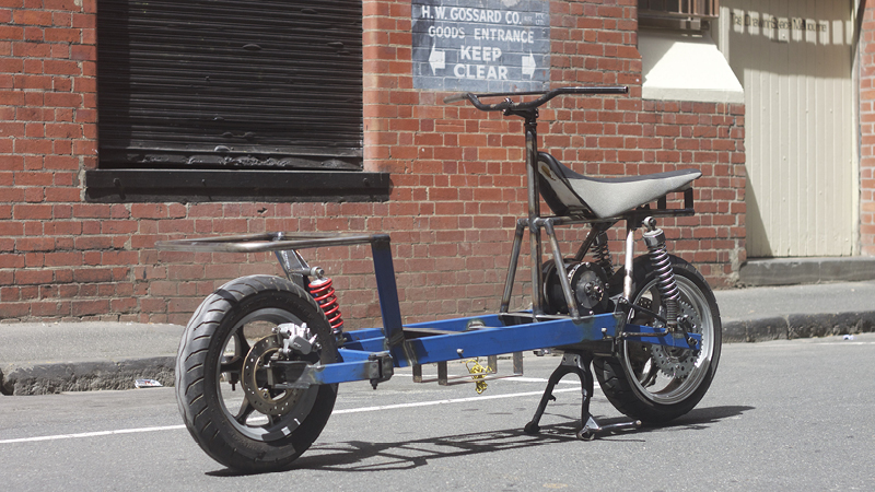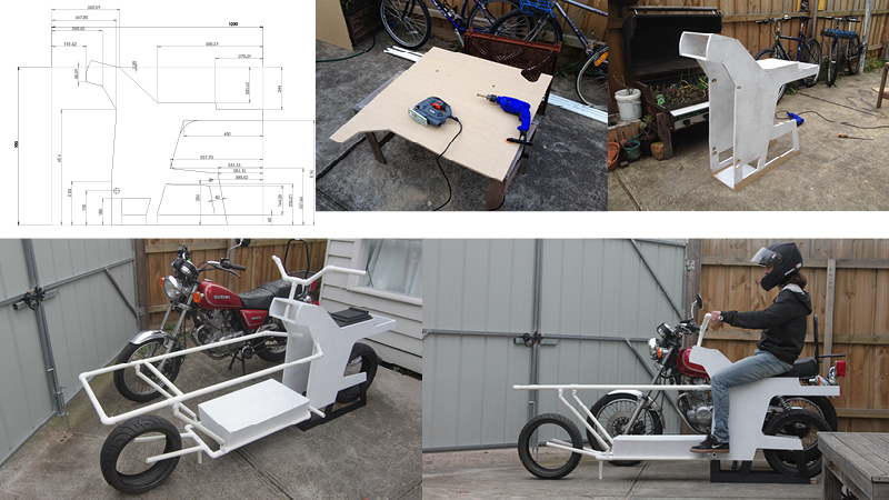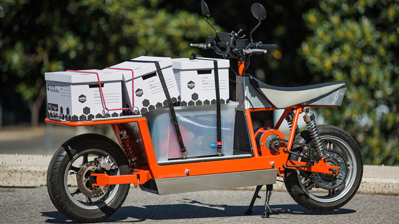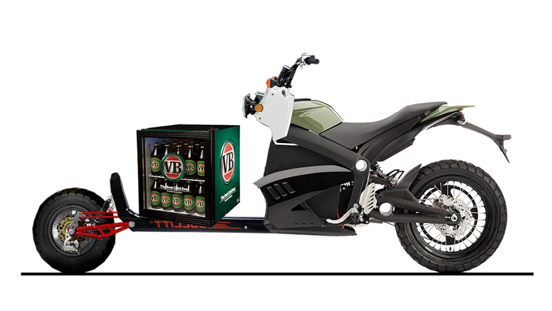 Hack photoshop: The first illustration of an electric cargo motorcycle. Sometimes a rough visualization is needed to explain to people what you’re on about! The VB fridge was added for Aussie impact.