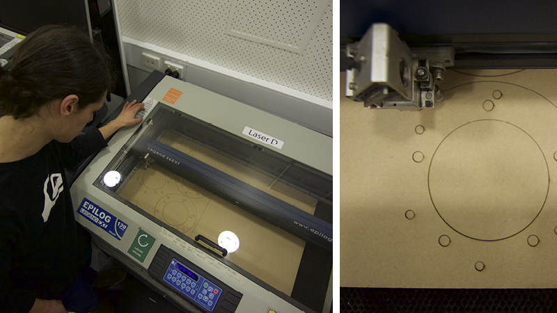 A sprocket adapter plate and a motor mount was needed. The easiest method was water jet cut steel plate, but the designs needed testing first. Laser cut MDF mock ups were the answer.