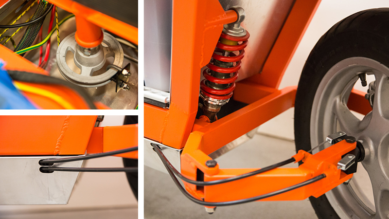 Tail section: You can see in this shot the rear suspension mounts. It’s two steel plates that sandwich a threaded rod connector that has been cut at the right angle.