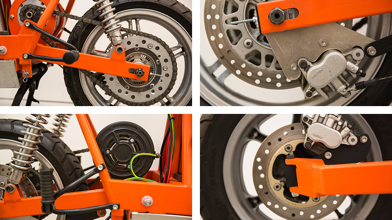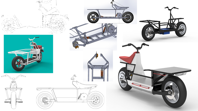 Components sourced: Power train components were sourced from a previous Industrial Design student. Carrying all that heavy gear on the back of a GN250 was “interesting”… It also confirmed the design decision of going with the “dutch cargo bike” design for EsCargo – having a large mass loaded high and at the rear is not ideal.